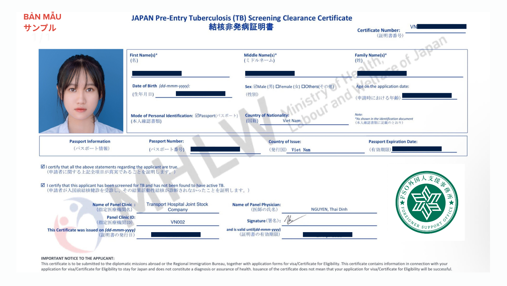 Bản mẫu tham khảo※Sau khi có kết quả, phía bệnh viện sẽ gửi bạn nhiều loại giấy tờ. Tuy nhiên chỉ cần nộp bản photo 1 tờ dưới đây.